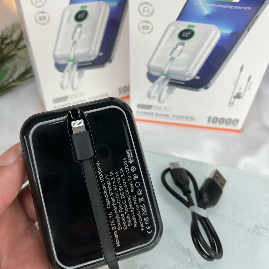 Nunca mais fique na mão! Com o Power Bank de 10.000mAh, você garante carga extra para seus dispositivos onde estiver. Ideal para quem vive na correria e precisa de bateria no celular, tablet ou outros dispositivos USB ao longo do dia.