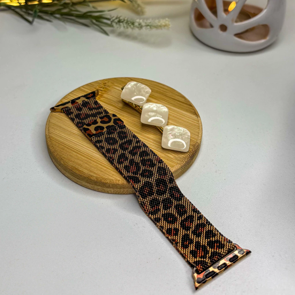 Com acabamento em metal resistente e estampa animal print marcante, essa pulseira eleva qualquer look – do casual ao elegante.